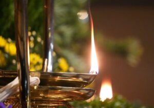 「仏さまはどなたかな?どうしてありがとう?」と尋ねたら「阿弥陀仏と諸仏がいらっしゃる。諸仏とは、阿弥陀仏の願いを説かれたお釈迦さま。その教えを広め伝えてくださった七高僧。なんまんだぶつのお仲間。みんなのおかげで門徒になれた。その恩に対してありがとう」と聞きました。一時、「おかげでありがとう」がお気に入りのフレーズだったそうです。現在の私にとって、法要は仏さまへの感謝と私自身を見直す仏事です。世代を超えた縁者と共に参り、語り合い、あるがままの自分を見つめる時間です。